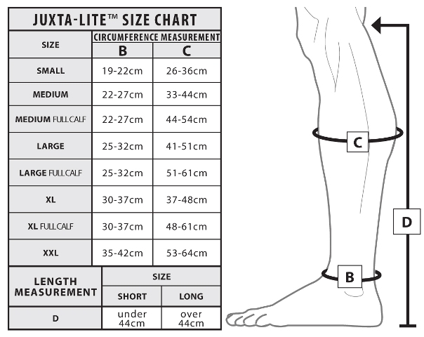 Sizes Of CircAid Juxtalite Lower Leg Wraps