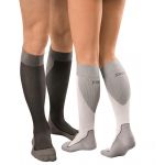 Compression athletic wear such as compression socks help to keep muscles warm and to prevent muscle or joint strain and fatigue. The additional warmth and support provided also helps to relieve pain from post-exercise muscle stiffness and soreness. Most athletic compression socks are designed with specialty fabrics that help wick sweat away from the skin, keeping the body dryer and helping to prevent chafing and rashes.