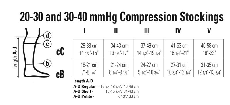Click here to open the Juzo knee high compression stocking sizing chart.