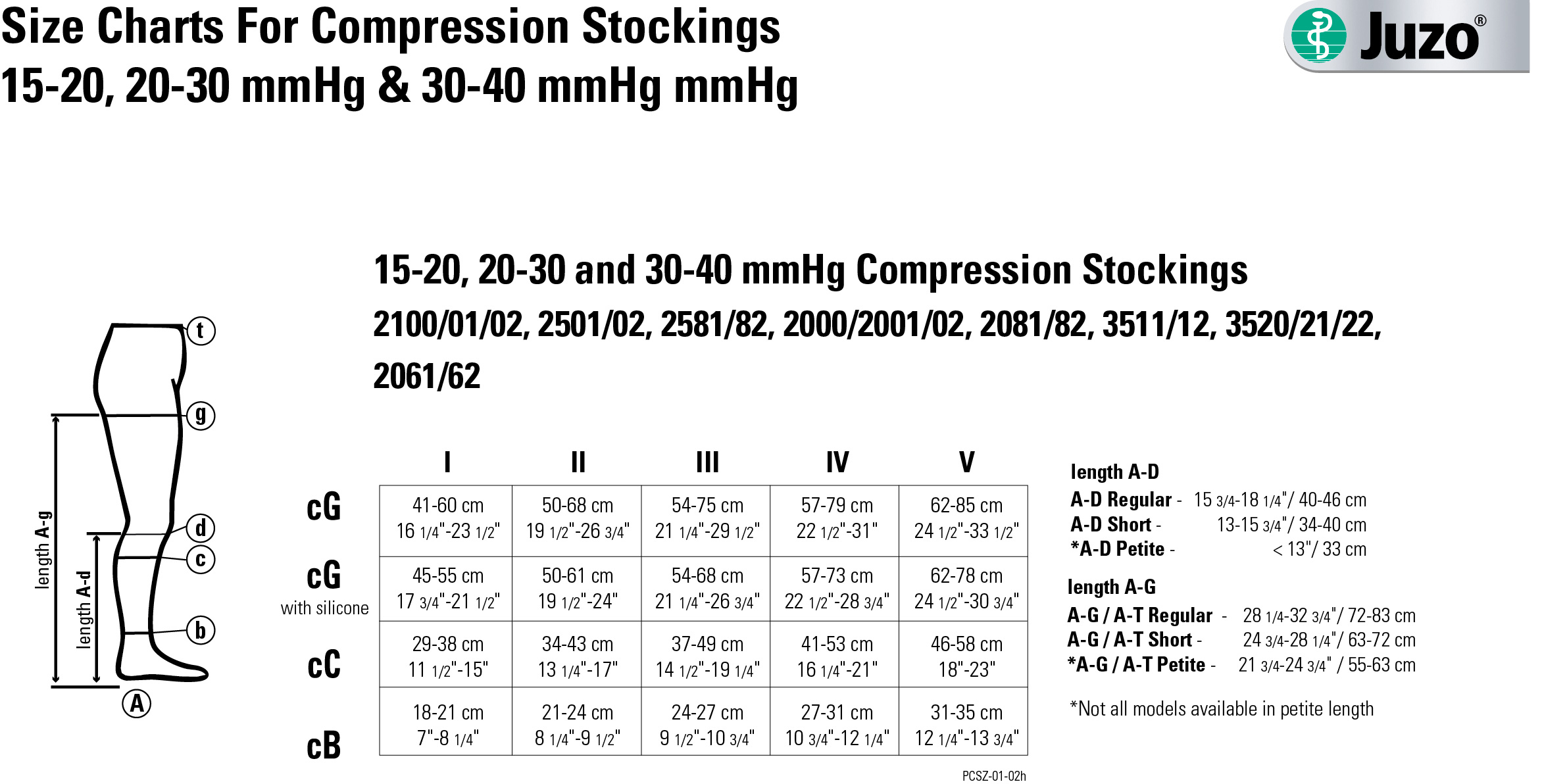 We have Juzo Soft knee high compression stockings available in 5 different sizes and 3 lengths:
