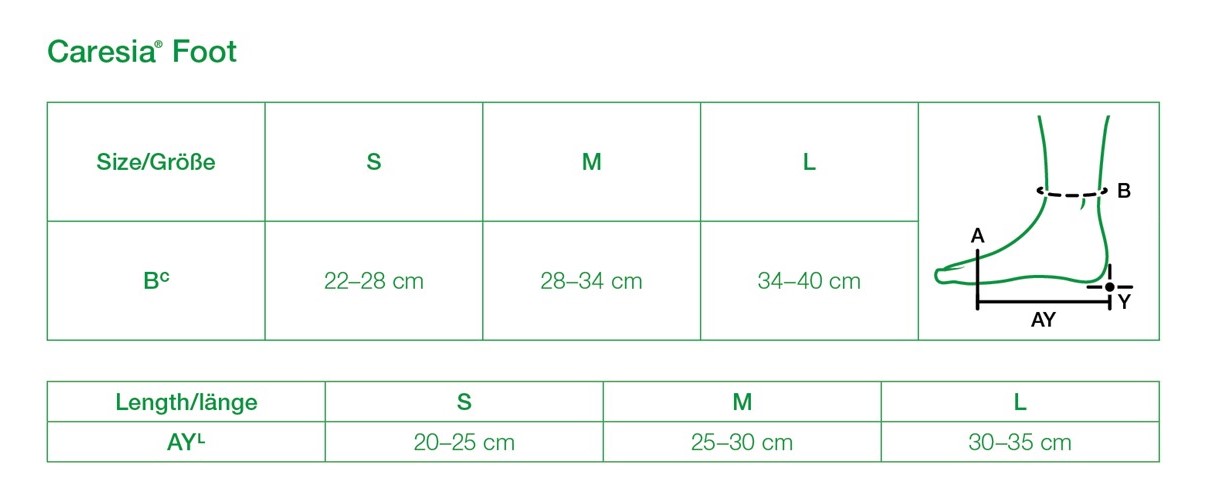 After the compression bandages have been applied, the specially designed foam channels within the Caresia lymphedema sleeve apply directional or bidirectional compression to the underlying tissues, while unique foam particles nestle into tissue to create localized tissue stretch and pressure differential. This tissue stretch opens the initial lymphatic gaps to encourage re-absorbtion of interstitial fluids and particles. Simply put, this means that the Caresia compression sleeve helps move fluid where it needs to go! The Caresia night time compression boot for lymphedema is excellent for you to replace night time bandaging if you have swelling and tissue induration in the foot and toes and who are in need of an ankle compression sleeve or foot compression sleeve. Many therapists also recommend this compression boot for their post-surgical foot patients and patients with arthritis or foot lymphedema. The Caresia foot bandage liner is also useful for those with diabetes, in helping to eliminate foot pain.