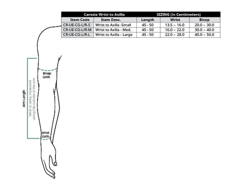 - The MCPs to Axilla Caresia Arm Bandage Liner is excellent for those patients who have swelling and tissue induration in the arm and dorsum and is designed to allow the fingers to be bandaged separately if needed.