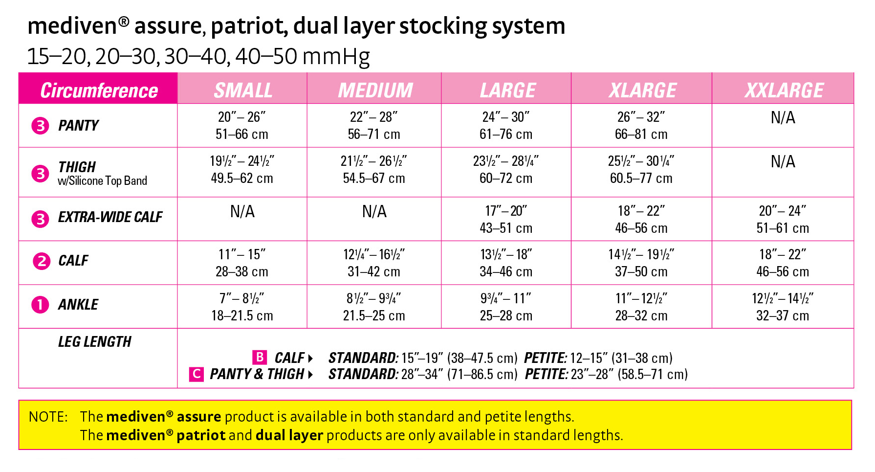 Click here to see the Mediven Assure compression pantyhose sizing chart.