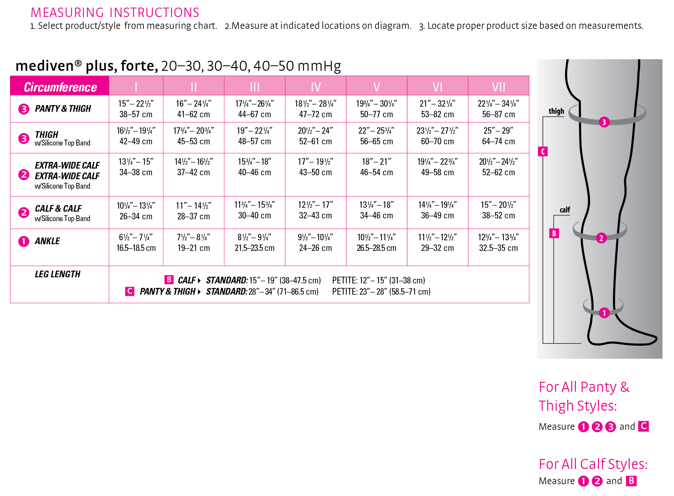 Available in 20-30mm Hg, 30-40mm Hg and 40-50mm Hg compression and both an open and closed toe model, and features an adjustable waist band. The Mediven Plus panty hose compression stockings are offered in a standard or petite length size.