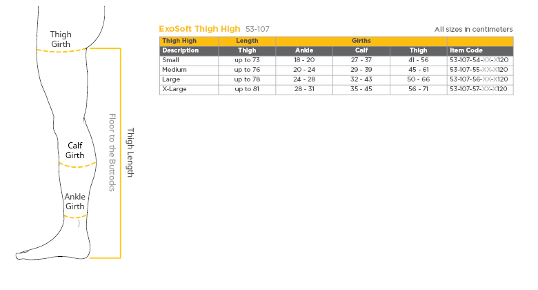 Click here to see the sizing chart for ExoSoft thigh high compression stockings.