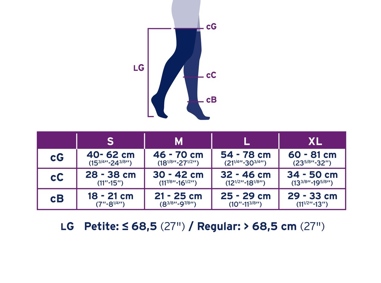 We have Jobst Relief thigh high compression stockings available in 4 different sizes and 2 lengths: