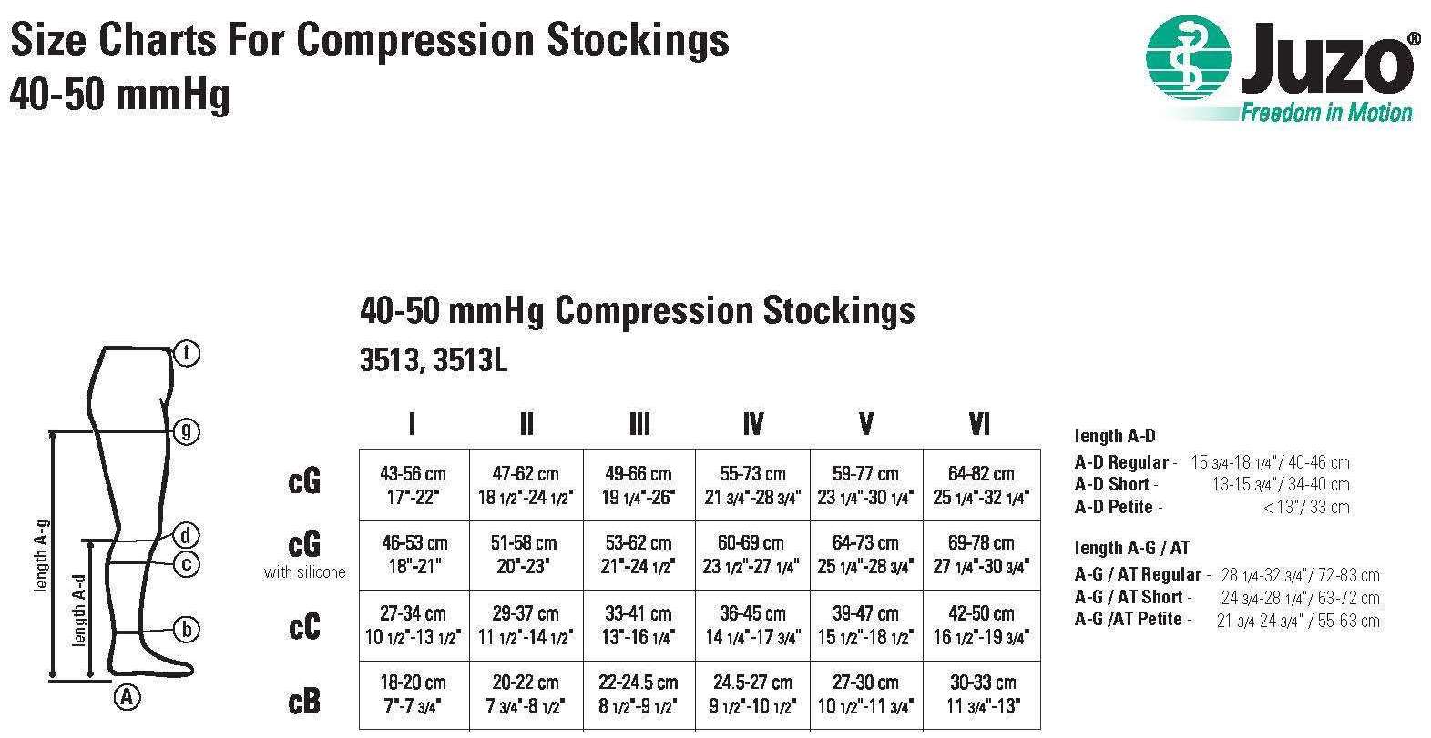 Click here to open the Juzo Dynamic compression stocking (40-50 mmHg) sizing chart.