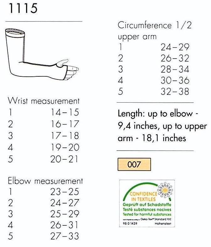 Sizes Of Anita Halifax Lymph-O-Fit Lymph Relief Arm Sleeves