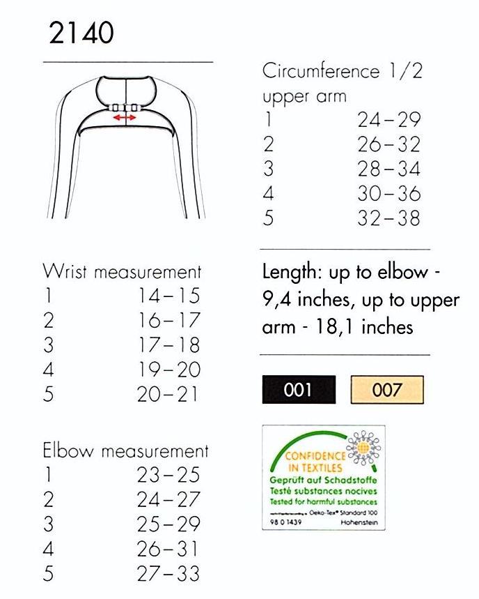 We have Anita Hamburg Lymph-O-Fit Lymph Relief compression arm sleeves available in 5 different sizes: