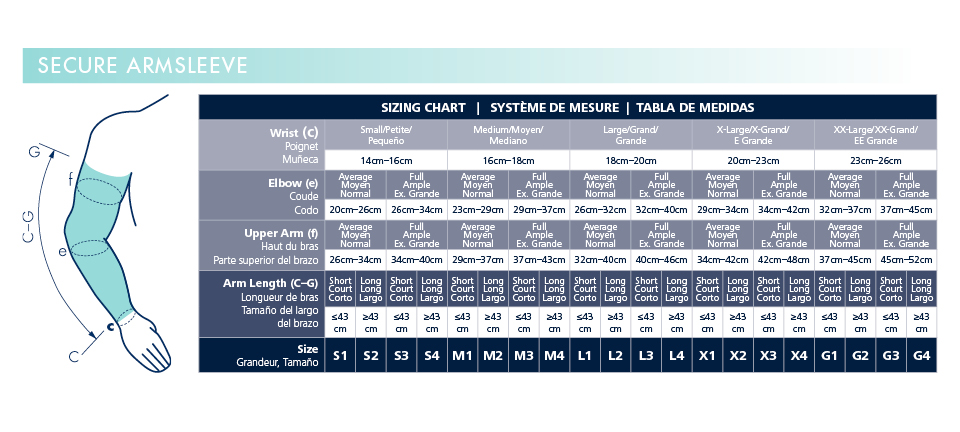 Click here to open the Sigvaris Secure size chart for arm sleeves.