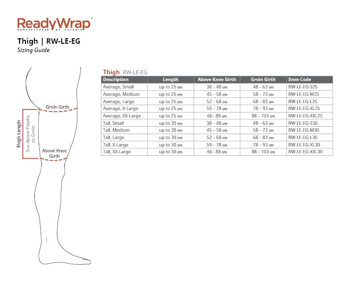 Click here to open the ReadyWrap compression wrap for legs (thigh unit) sizing chart.