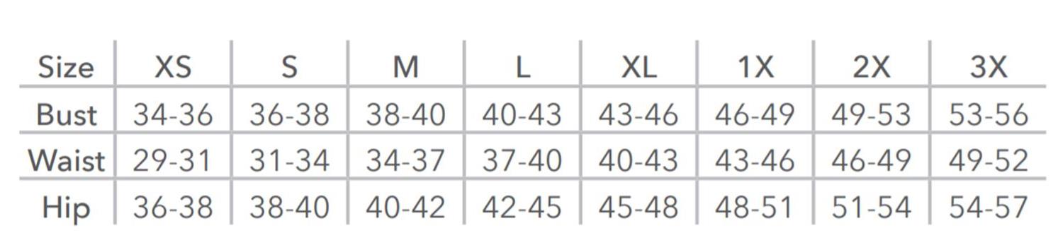 Click here to open the Wear Ease Ava compression camisole sizing chart.