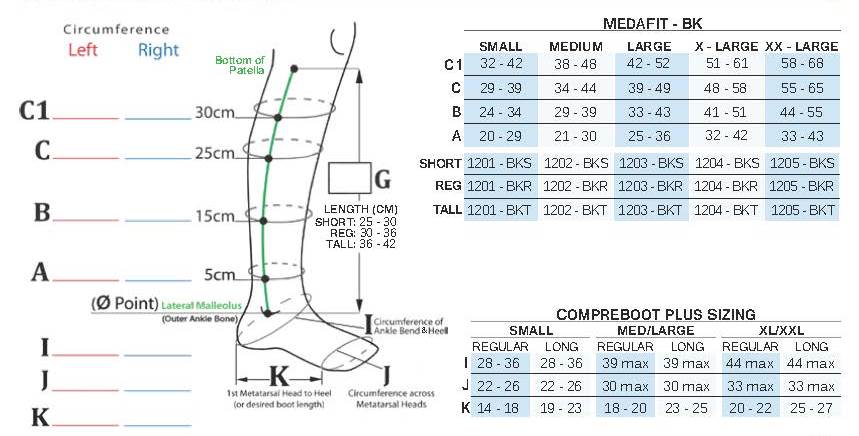 Click here to open the Medaform Standard calf compression wrap sizing chart.